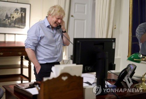 바이든 미 대통령과 통화하는 존슨 영국 총리 |