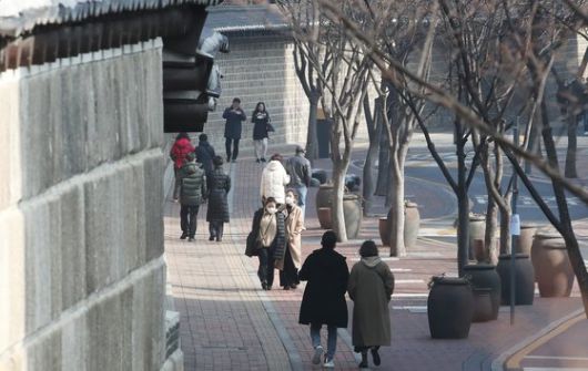 지난 7일 오후 서울 중구 덕수궁 돌담길에서 시민들이 산책을 즐기고 있다. 뉴스1 |