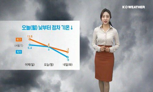 아침 최저기온은 0~10℃, 낮 최고기온은 2℃~14℃를 보이겠다.