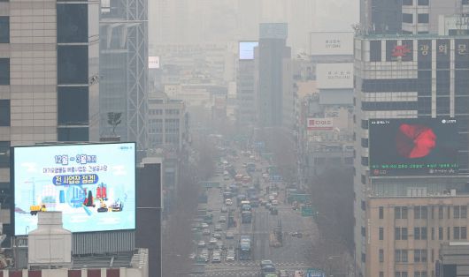 지난14일 초미세먼지 농도가 전국에서 ‘나쁨’ 이상 상태를 보인 가운데 서울 종로구 서울시교육청에서 바라본 도심이 뿌옇다.(사진=연합뉴스 제공) |