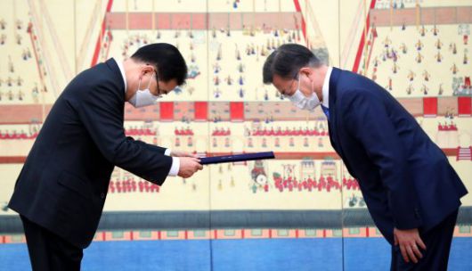 문 대통령은 이날 청와대에서 가진 정의용 외교부, 황희 문화체육관광부, 권칠승 중소벤처기업부 장관에 대해 임명장을 수여한 뒤 가진 비공개 환담에서 정 장관에게 이같이 말했다고 강민석 청와대 대변인은 서면브리핑을 통해 밝혔다.