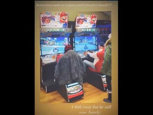 마리오카트는 닌텐도의 경주용 자동차 레이싱 게임이다. 손녀는 사진 상단에 "비밀경호국(SS)이 예외를 인정해 할아버지에게 운전을 직접 하도록 해줬다!"고 쓰고는 하단에는 "실력이 좀 녹슬기는 했지만 할아버지가 여전히 이겼다 (간신히)"라고 적었다.