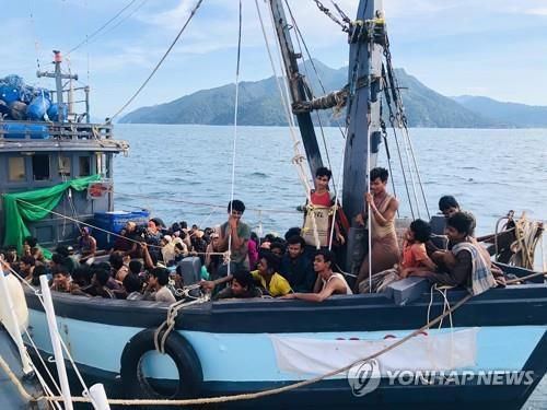 작년 4월 5일 말레이시아 도착한 로힝야족 난민 보트 |