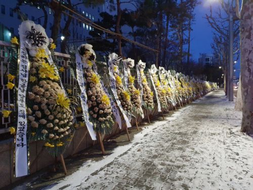 법원 정문 양 옆으로는 약 200m에 걸쳐 정인 양을 추모하는 근조 화환 110여 개가 늘어서 있었다. 근조 화환에는 "홀트는 진심으로 사과하라" "안씨(정인 양의 양부)를 구속하라" 등의 문구가 새겨져 있었다.