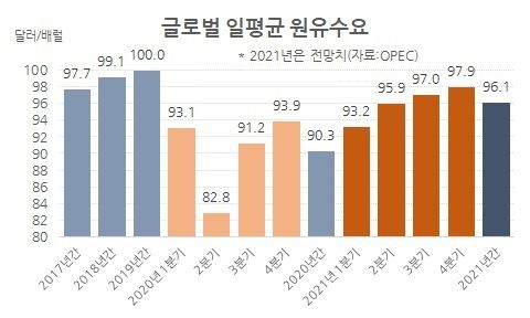 코로나19 이전 글로벌 원유 수요는 하루평균 약 1억 배럴이다. 지난해 9000만 배럴 수준으로 하락했고, 올 들어 9600만 배럴 수준으로 회복됐다. 현재 미국은 일 200만 배럴, 석유수출국기구(OPEC)이 약 800만 배럴 가량의 증산 여력이 있는 것으로 알려졌다. 만약 하루 1억2000만~1억4000만 배럴 수준까지 수요가 급증하면 공급부족 나타날 수. 하지만 아랍에미레이트(UAE)도 생산능력 확충을 준비 중이다. 미국의 제재로 원유시장에서 배제됐던 이란이 바이든 정부에서 복귀할 가능성도 배제하지 못한다. 코로나19에서 벗어난다고 해도 과거보다 원유수요가 더 늘어날 것이라 장담하기 어렵다. 이른바 ‘보복소비’로 일시적인 초과수요가 발생할 가능성에는 대비할 필요는 있다.