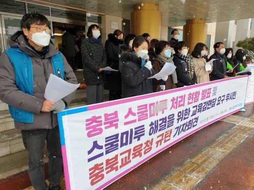 이 단체는 충북도교육청에서 기자회견을 열어 "2018년 이후 도내 여러 학교에서 스쿨미투가 터져 나왔으나 교육청이 내린 조치는 1년에 한두 번 성평등 예방교육을 하는 것이 전부"라고 지적했다.