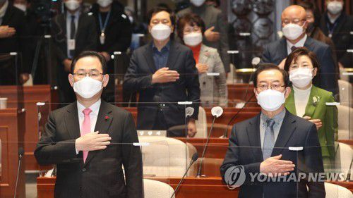 주호영 원내대표는 의원총회 후 기자들과 만나 사찰 기록 관리와 관련해 "국회에서 그걸 결정해주면 편하겠다"고 말했다. 여당의 '특별법' 추진을 직접 수용하는 것은 아니지만, 조사 및 공개에 거리낄 게 없다는 자신감을 드러낸 것으로 보인다.