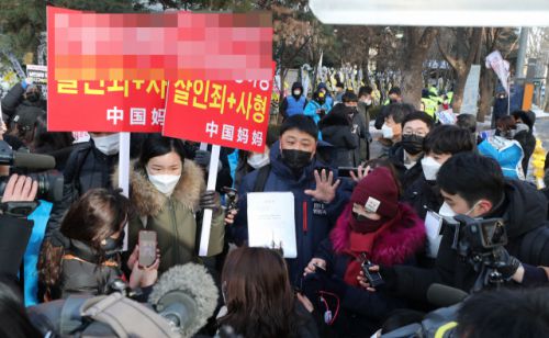 이날 재판이 열린 서울남부지법 청사 앞에서는 양부모에 대한 엄벌을 촉구하는 시민들의 시위가 이어졌다.