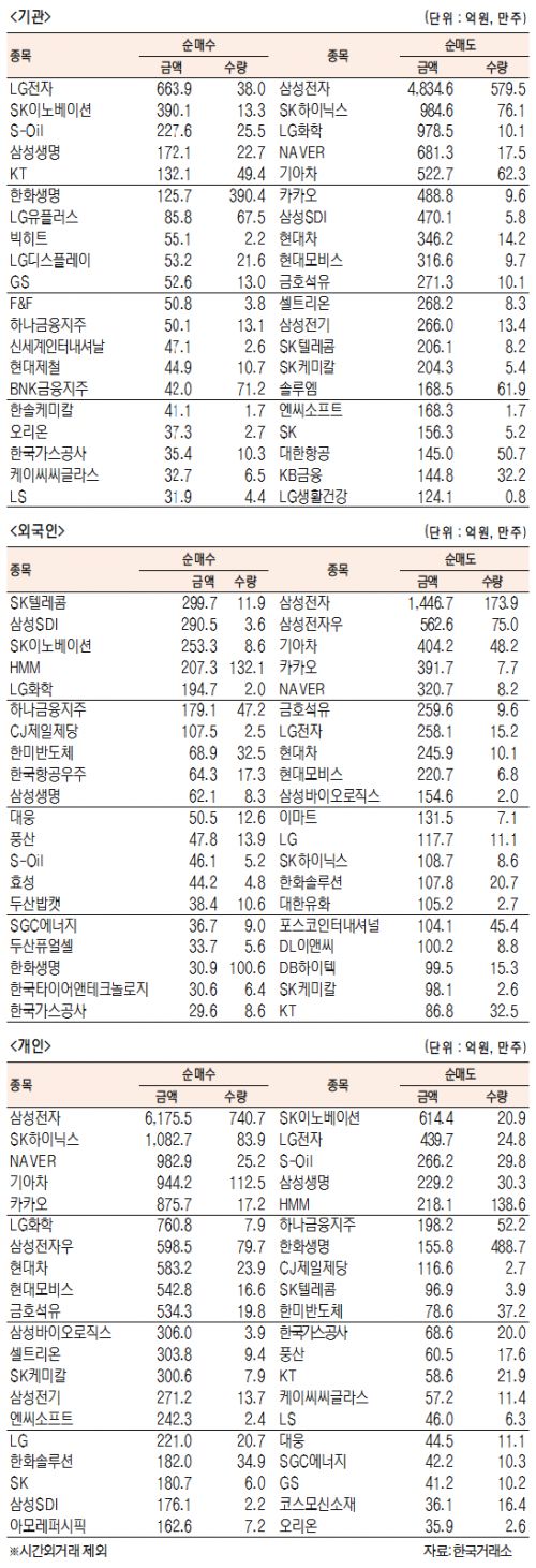 [표]유가증권 기관·외국인·개인 순매수·도 상위종목(2월 17일)