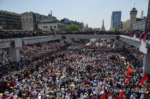 미얀마 양곤 중심가 가득 메운 쿠데타 규탄 시위대 |