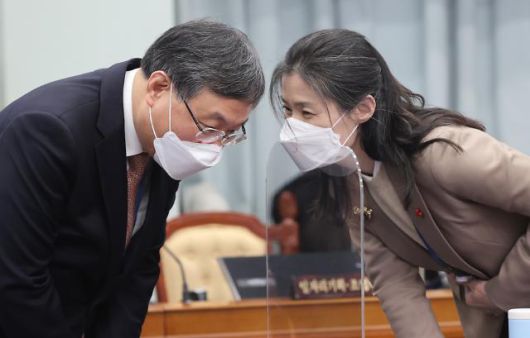 대화하는 신현수 민정수석과 김외숙 인사수석 (서울=연합뉴스) 최재구 기자 = 청와대 신현수 민정수석과 김외숙 인사수석이 5일 오전 청와대에서 열리는 국무회의에 앞서 대화하고 있다. 2021.1.5 jjaeck9@yna.co.kr/2021-01-05 10:24:23/ <저작권자 ⓒ 1980-2021 ㈜연합뉴스. 무단 전재 재배포 금지.> |