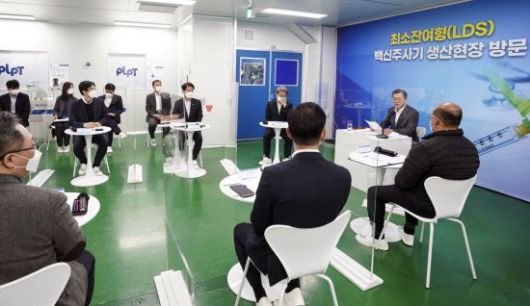 이날 문 대통령은 LDS 백신주사기 생산공정을 살펴보고, 중기부 장관과 식약처장으로부터 백신주사기 생산업체에 대한 지원 계획을 보고받는 한편, 풍림파마텍·신아양행·두원메디텍 관계자들과 간담회를 갖고 건의사항을 청취했다.