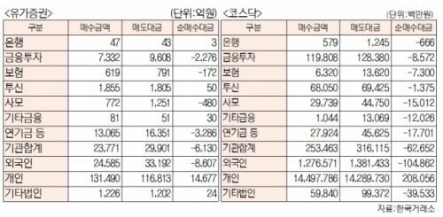 [표]유가증권 코스닥 투자주체별 매매동향(2월 18일-최종치)