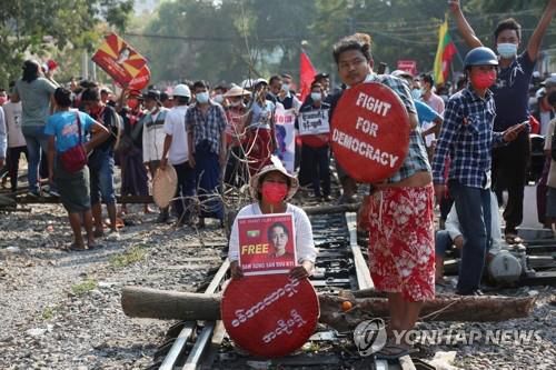(자카르타=연합뉴스) 성혜미 특파원 = 미얀마 군부의 쿠데타에 반대하는 시위가 연일 이어지는 가운데 특히 철도 노동자에 대한 군경의 탄압이 거세지고 있다.