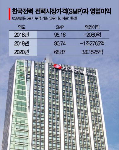 유가는 그동안 한전의 영업이익에 큰 영향을 미쳤다. 한전이 최근 발표한 전력통계속보에 따르면 한전의 SMP는 2019년 1kWh당 90.74원에서 2020년 68.87원으로 급락했다. 유가는 WTI 기준 같은 기간 배럴당 60~70달러대에서 10~40달러대로 하락했다. 한전 영업이익 역시 2019년 1조3000억원 적자에서 2020년 3분기 누적 3조2000억원의 흑자로 돌아섰다. 유가 전망을 볼 때 한전은 올해까지 버틸 수 있다고 봤지만 실적악화 시점이 예상보다 빨리 찾아온 것이다.