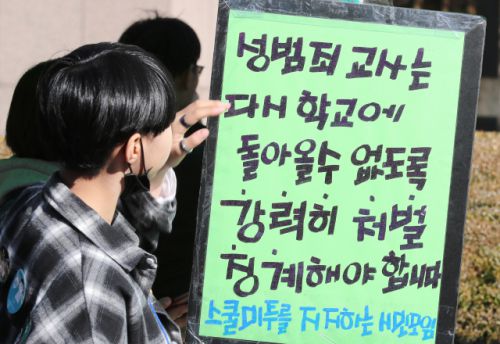 2018년 '스쿨미투'의 도화선이 된 서울 노원구 용화여고 여학생 강제추행 사건의 당사자인 전직 교사가 실형을 선고받고 법정 구속됐다.