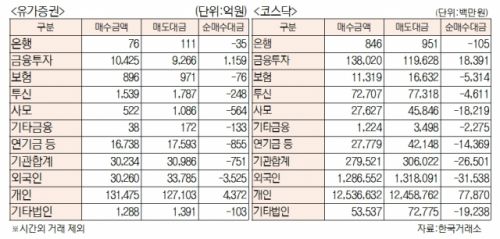 [표]유가증권 코스닥 투자주체별 매매동향(2월 19일)