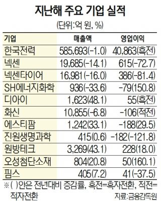 SH에너지화학(002360)은 건설 경기가 침체하면서 연결 영업이익이 -79억 원으로 전년 대비 150.8% 감소해 2년 연속 적자를 이어갔다. 같은 기간 매출액은 33.6% 줄어든 936억 원이었다. 코로나19로 해외 법인 가동이 일시 중단됐던 자동차 부품 업체 화신(010690)도 영업이익이 -106억 원으로 적자 전환했다.
