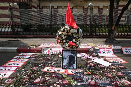 미얀마 쿠데타 규탄 시위 '첫 사망자' 추모 공간 |
