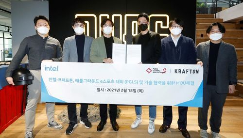 (서울=연합뉴스) 이효석 기자 = 크래프톤은 인텔과 '플레이어언노운스 배틀그라운드'(PUBG) e스포츠 공동 사업을 위한 양해각서(MOU)를 체결했다고 22일 밝혔다.