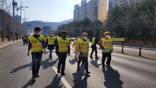 이날 행진은 '정유엽과 내딛는 공공의료 한 걸음 더'란 주제로 경찰 경호 아래 진행됐다.