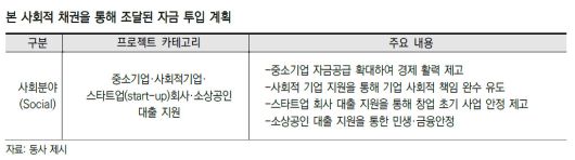 이에대해 금융권 관계자는 “관리체계는 사회적 채권으로 지원할 전체 대상을 제시하는 수준이고, 구체적인 자금배분은 발행기관 내부적으로 결정하고 실행하는 것이어서 외부 평가기관이 사전에 파악하기 어렵다”고 말했다.