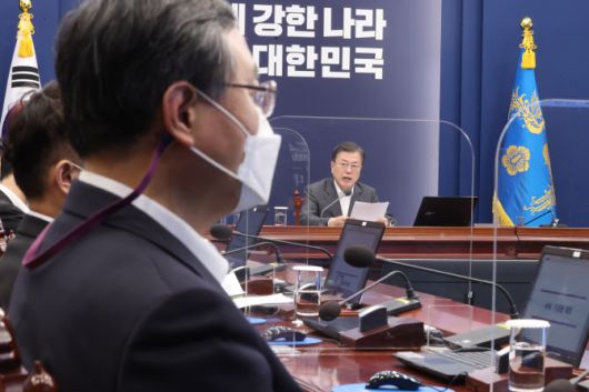 이날 문 대통령은 코로나19 방역과 4차 재난지원금, 벤처 기업인들의 기부행렬 등에 대해 언급했다. 신현수 청와대 민정수석 사의파동을 둘러싼 각종 논란과 관련해서는 말을 아꼈다.