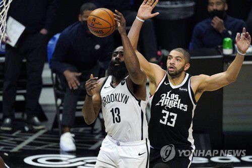 (서울=연합뉴스) 최송아 기자 = 제임스 하든과 카이리 어빙을 앞세운 미국프로농구(NBA) 브루클린 네츠가 로스앤젤레스(LA) 클리퍼스를 제압하고 6연승을 내달렸다.