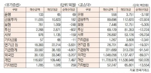 [표]유가증권 코스닥 투자주체별 매매동향(2월 22일-최종치)