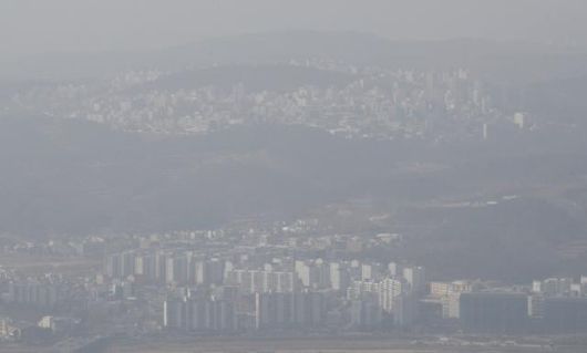 (울산=뉴스1) 울산지역 미세먼지와 초미세먼지 농도가 나쁨 수준을 보인 지난 1월 13일 울산 북구 무룡산에서 바라본 도심이 회색빛으로 뿌연 모습을 보이고 있다. |