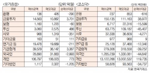 [표]유가증권 코스닥 투자주체별 매매동향(2월 23일-최종치)
