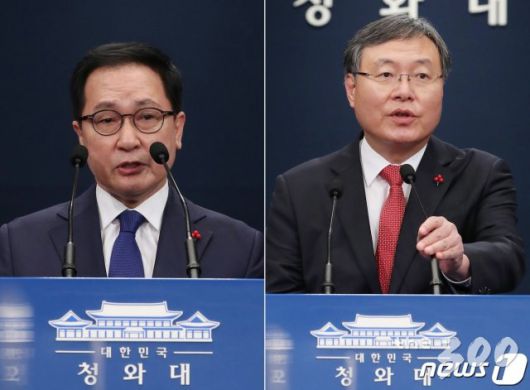 (서울=뉴스1) 박정호 기자 = 유영민 신임 대통령 비서실장(왼쪽 사진)과 신현수 신임 민정수석이 31일 오후 춘추관에서 인사와 관련한 소회를 밝히고 있다. 문재인 대통령은 이날 노영민 비서실장 후임으로 유영민 전 과학기술정보통신부 장관, 김종호 민정수석 후임에 신현수 전 국가정보원 기획조정실장을 임명했다. 2020.12.31/뉴스1 |