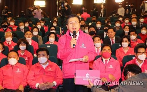 출구조사 결과 발표 후 소감말하는 황교안 |