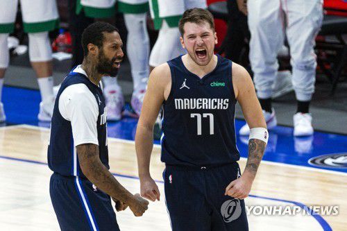 (서울=연합뉴스) 김동찬 기자 = 루카 돈치치가 역전 3점슛과 결승 3점포를 연달아 터뜨린 댈러스 매버릭스가 보스턴 셀틱스를 상대로 3점 차 승리를 따냈다.