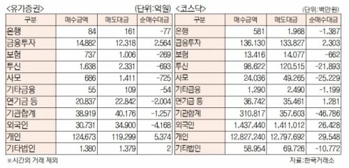 [표]유가증권 코스닥 투자주체별 매매동향(2월 24일)