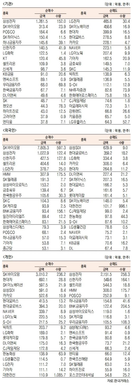 [표]유가증권 기관·외국인·개인 순매수·도 상위종목(2월 24일-최종치)