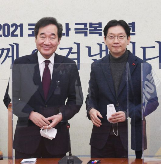 이낙연 더불어민주당 대표(왼쪽)가 지난 1일 오후 국회 당대표 회의실에서 김경수 경남도지사를 접견하고 있다 (사진=연합뉴스) |