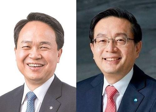 손태승(오른쪽) 우리금융지주 회장과 진옥동 신한은행장의 라임 펀드 관련 제재심의위원회가 25일 열린다./우리금융지주, 신한은행 |