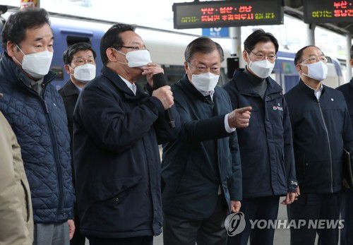 문 대통령은 먼저 부산진구에 위치한 부전역을 방문한 자리에서 송철호 울산시장으로부터 동남권 광역교통망 구축 등을 골자로 하는 생활공동체 및 행정공동체 조성 방안을 보고받았다.