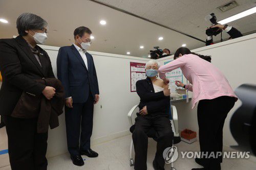 백신 접종 지켜보는 문재인 대통령 |