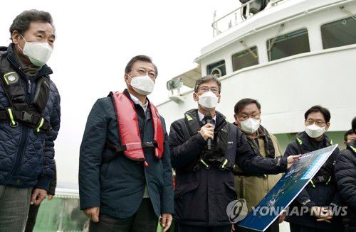가덕도 공항 예정지 선상 시찰하는 문 대통령 |