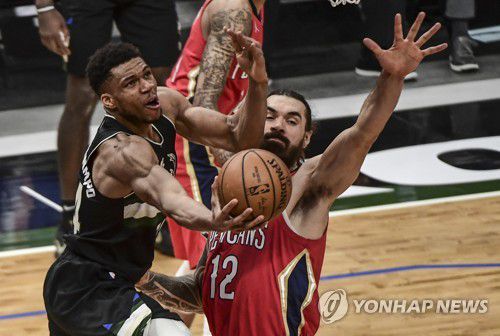 (서울=연합뉴스) 장보인 기자 = 야니스 아데토쿤보와 크리스 미들턴이 날아오른 미국프로농구(NBA) 밀워키 벅스가 자이언 윌리엄슨이 버틴 뉴올리언스 펠리컨스를 누르고 4연승을 달렸다.
