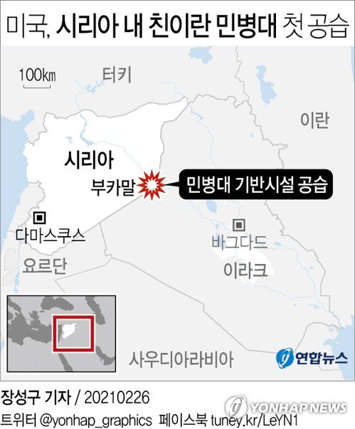 존 커비 미 국방부 대변인은 이날 "조 바이든 대통령의 지시로 미군이 오늘 저녁 시리아 동부에서 이란의 지원을 받는 민병대의 기반시설을 겨냥한 공습을 진행했다"고 밝혔다고 로이터·AP·AFP 통신 등이 보도했다.