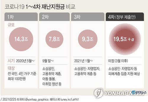[그래픽] 코로나19 1~4차 재난지원금 비교 |