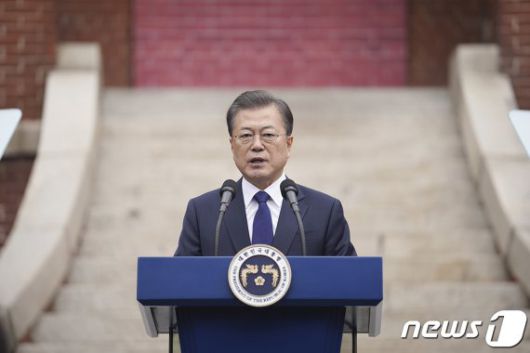 (서울=뉴스1) = 문재인 대통령이 1일 서울 종로구 필운동 배화여고에서 열린 제101주년 3.1절 기념식에서 기념사를 하고 있다. (청와대 제공) 2020.3.1/뉴스1 /사진=뉴스1화상 |