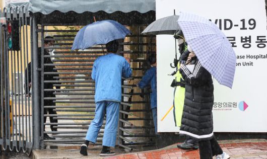 코로나19 백신 접종 사흘째인 1일 오후 코로나19 백신을 접종하고 있는 서울 중구 국립의료원 중앙접종센터에서 의료진이 들어가고 있다. 연합뉴스 |