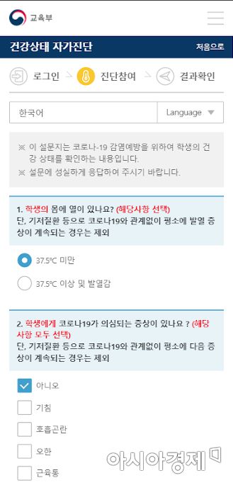교육부에 따르면 자가 진단 앱에 등록된 학생은 547만명으로, 이날 오전 10시 기준으로 이 가운데 74%가 자가 진단에 참여한 것으로 파악됐다.