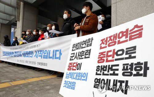 단체는 "한미 연합 훈련은 대북 선제공격을 전면에 내세워 북의 말살을 기도하는 연습"이라며 "남북이 2018년 판문점에서 만나 상대방에 대한 모든 적대 행위를 전면 중지하기로 했던 약속을 잊어서는 안 된다"고 비판했다.