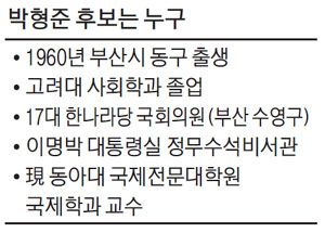 박형준 동아대 교수(61)가 국민의힘 부산시장 후보로 4일 결정됐다. 국민의힘은 이날 부산시장 후보 경선 결과 발표회를 열고 박 교수가 54.4% 득표율로 1위를 차지했다고 밝혔다.