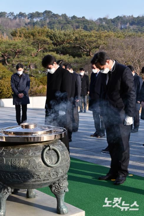 현충원 참배하는 국민의힘 오세훈 서울시장 후보